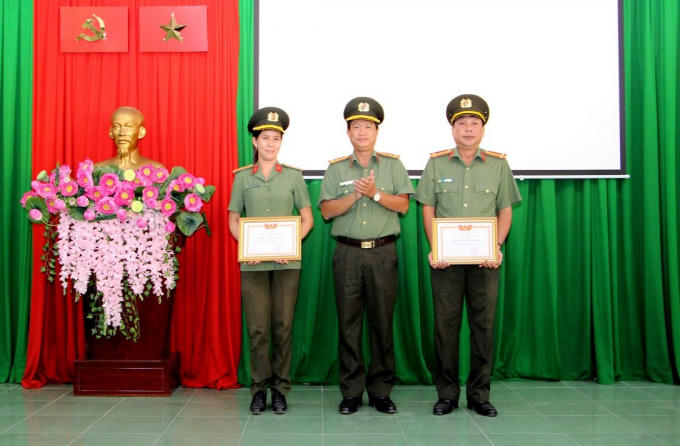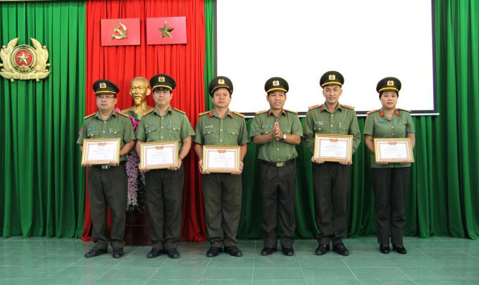 Thượng tá Võ Văn Chỉnh, Trưởng phòng Công tác đảng và công tác chính trao danh hiệu “Chiến sỹ thi đua cơ sở” cho các cá nhân xuất sắc.