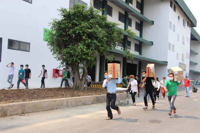 Đám cháy nhanh chóng lan rộng, sản sinh nhiều khói, khí độc, bao trùm toàn bộ nhà xưởng gây nguy hiểm đến tính mạng nhiều người. Lực lượng chữa cháy tại chỗ nhanh chóng triển khai đội hình hướng dẫn thoát nạn, cứu người và di chuyển tài sản đến nơi an toàn.