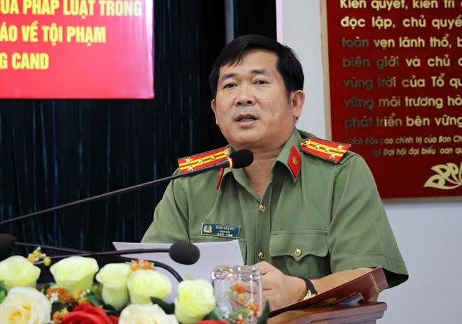 Đại tá Đinh Văn Nơi Giám đốc Công an tỉnh An Giang phát biểu tại hội thảo.