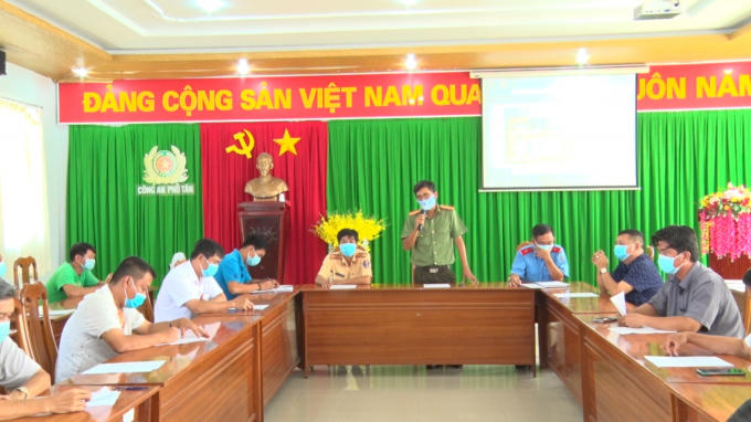 Tại đây, các đơn vị kinh doanh dịch vụ vận chuyển hành khách được nghe đại diện Công an huyện thông tin tình hình dịch dệnh Covid - 19, các biện pháp phòng chống dịch.