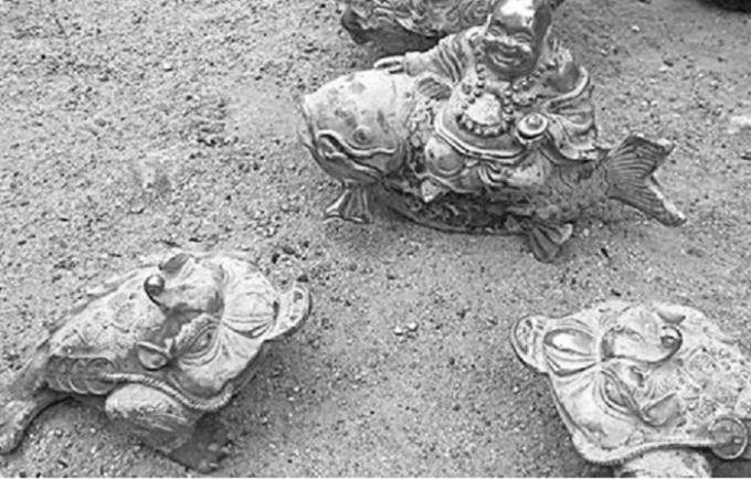 Ngày 1/7, dư luận huyện Tuy Phong (tỉnh Bình Thuận) bỗng “dậy sóng” trước thông tin ông P. (ngụ Vĩnh Hảo, huyện Tuy Phong) phát hiện nhiều tượng kim loại màu vàng khi đang đào ao ở trong vườn nhà. Số tượng này gồm một bình hồ lô, một tượng Phật Di Lặc cưỡi cá chép, 2 con cóc ngậm tiền.
