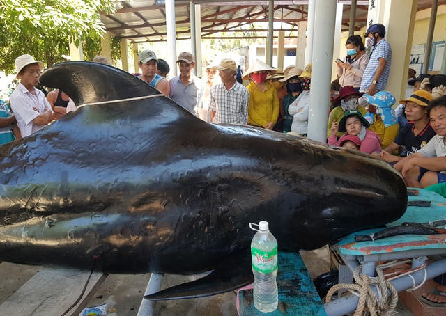 Cá voi dạt vào bờ biển xã Vĩnh Lương (TP Nha Trang) trưa 7/5.
