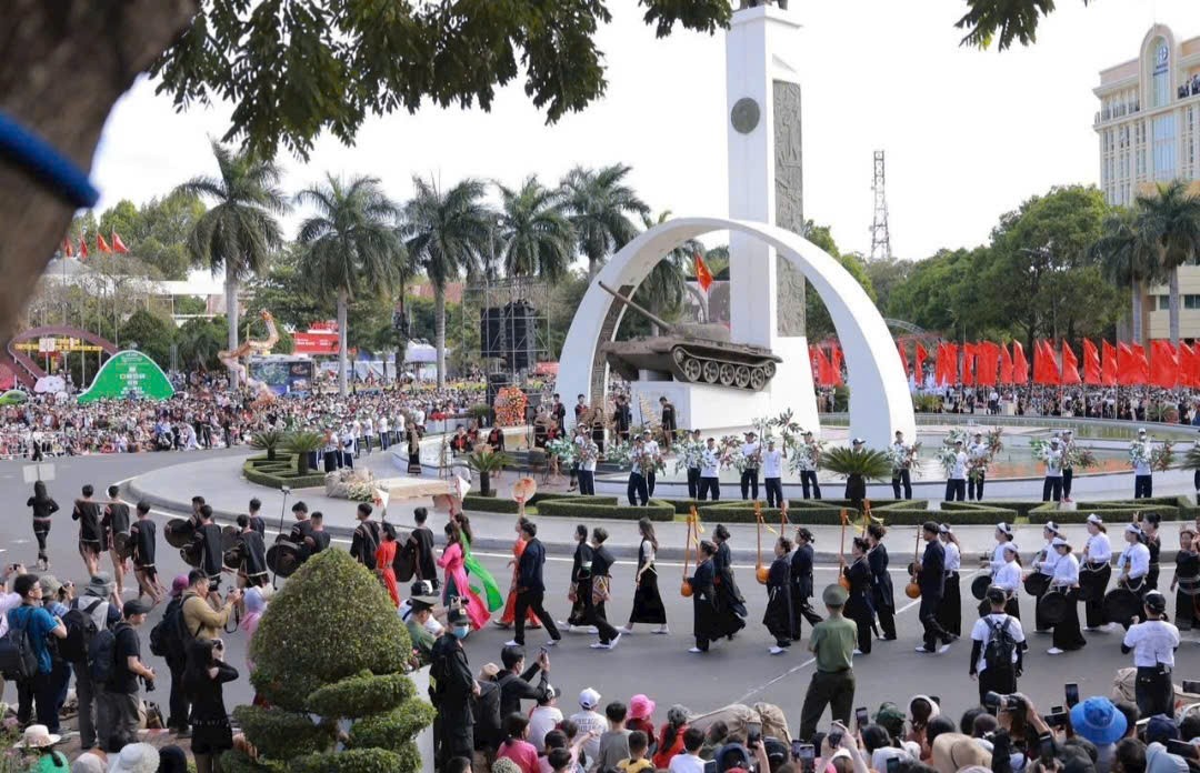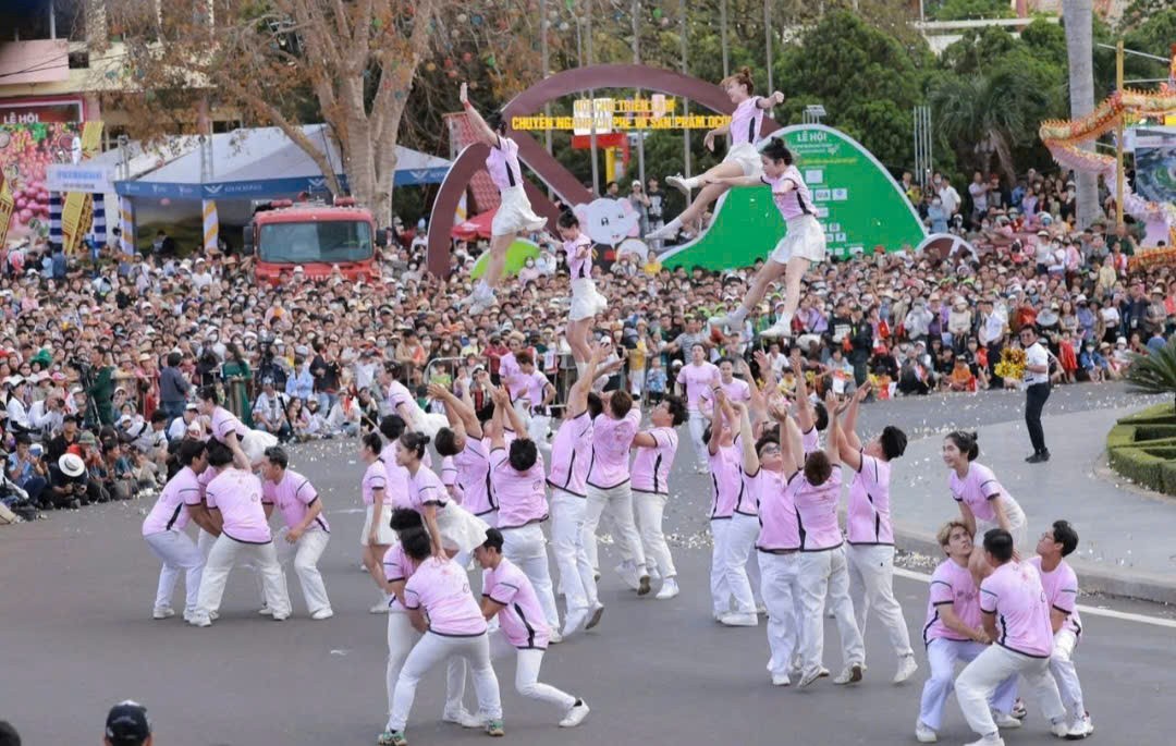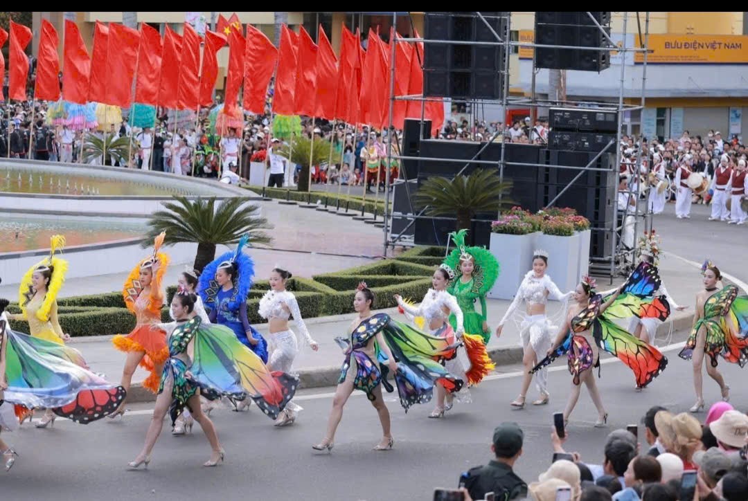 Sự kiện diễn ra tại khu vực tượng đài ngã sáu trung tâm thành phố đã thu hút đông đảo người dân và du khách, mang đến một không gian lễ hội sôi động, rực rỡ sắc màu và đậm đà bản sắc Tây Nguyên.