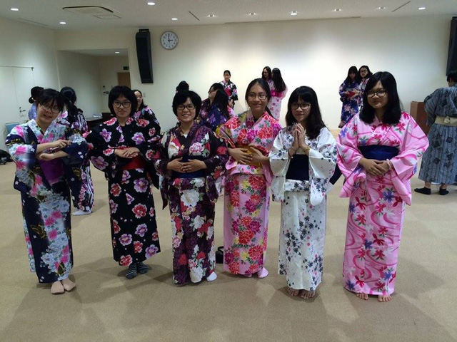 | Cô gái Việt (mặc yukata trắng) trong chuyến trải nghiệm học tập tại xứ sở hoa anh đào. |