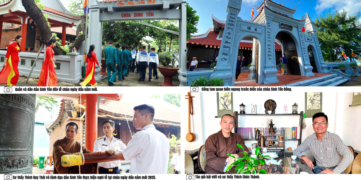 Đọng mãi trong tôi là hình ảnh cán bộ, chiến sĩ và nhân dân trên đảo cùng đến lễ chùa ngày đầu năm mới 2025. Khi đám trẻ con trên đảo xúm lại, Trụ trì chùa Sinh Tồn là Đại đức Thích Quy Thái rạng rỡ, ân cần mừng tuổi các cháu những phong bao đỏ thắm. Giản dị thế thôi mà mang cả nguồn lớn năng lượng mặc nhiên của sức sống trên đảo – vững vàng, sum vầy, hoan hỉ và an lành.