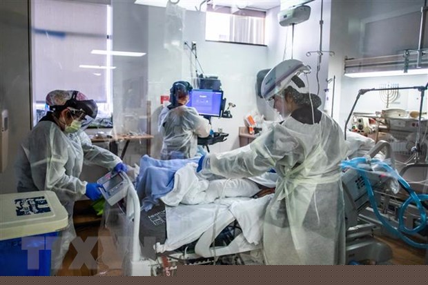 Điều trị cho bệnh nhân nhiễm COVID-19 tại bệnh viện ở Tarzana, California, Mỹ. (Ảnh: AFP/TTXVN)
