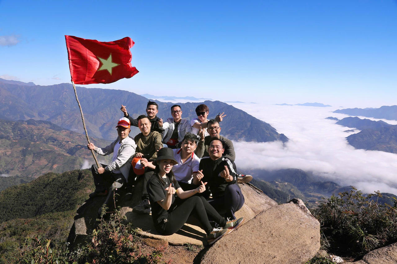 | Cố nhà báo Hà Sơn Bình (ngoài cùng hàng hai bên phải) cùng các đồng nghiệp trong chuyến đi khảo sát cho sự kiện “Bước chân trên mây” mùa thứ nhất. |