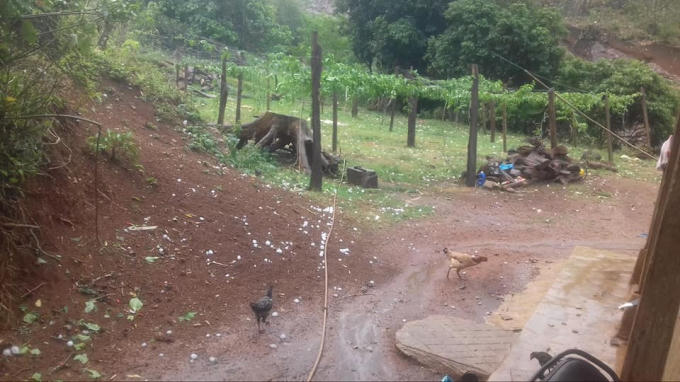 "Mưa đá diễn ra trong khoảng 20-30 phút, kích cỡ viên đá khoảng 30mm. Khi đó, những viên đá ào ạt dội xuống nóc nhà, chúng tôi ở bên trong sợ quá không dám ra ngoài", chị Nhuần chia sẻ.