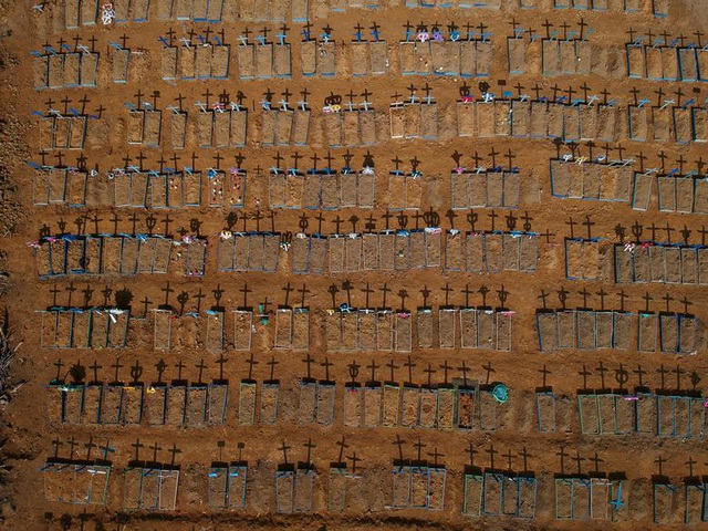 Những ngôi mộ san sát mọc lên tại nghĩa trang Parque Taruma, thành phố Manaus, Brazil do đại dịch Covid-19.