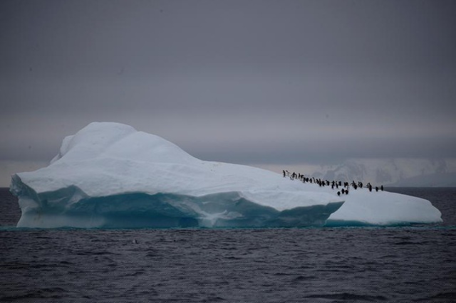 Đàn chim cánh cụt trên một tảng băng trôi nổi trên biển gần kênh Lemaire, Nam Cực tháng 2/2020.