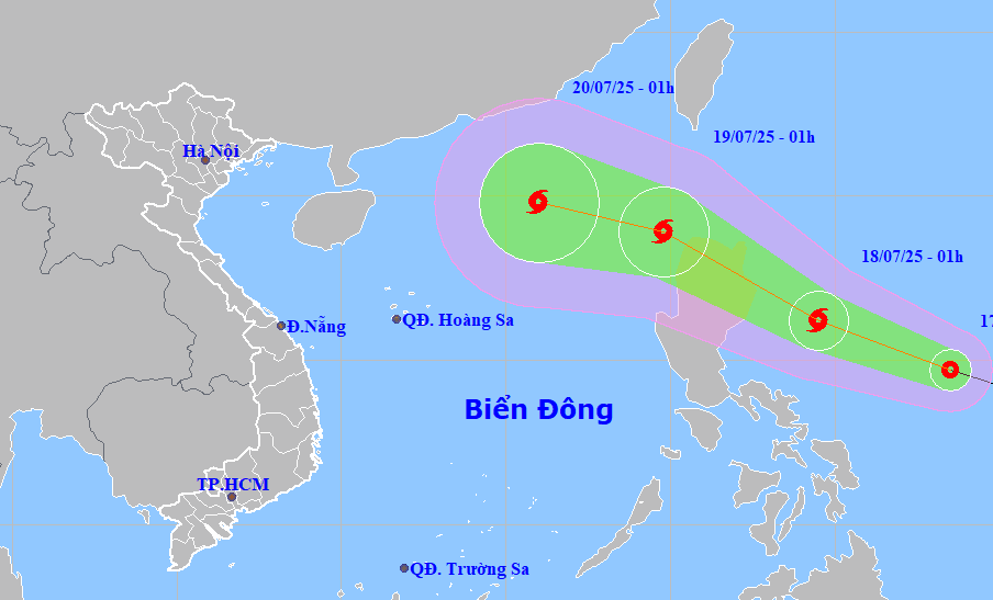 Dự báo đến 1h ngày 18/7, tâm bão sẽ ở trên vùng biển phía đông đảo Luzon (Philippines), với cường độ mạnh cấp 8, giật cấp 10.