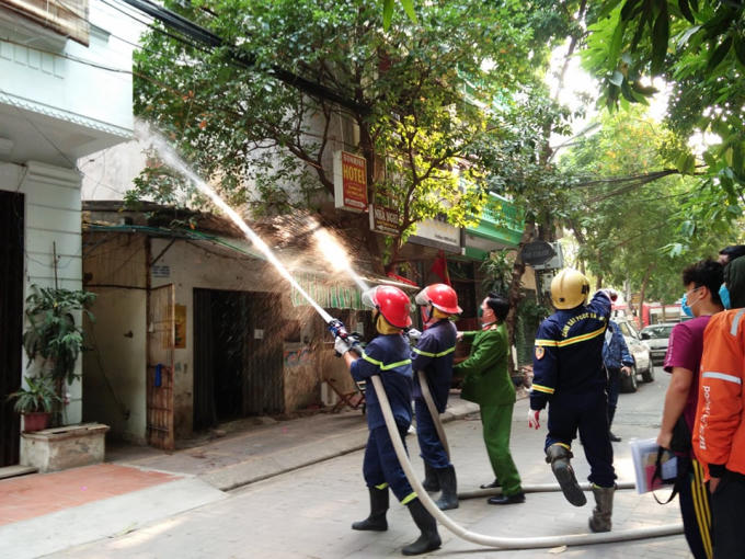Vào thời điểm lực lượng chức năng có mặt, đám cháy bốc lên thành cột khói, lửa bắt đầu từ tầng 2 ngôi nhà 5 tầng và lan lên các tầng trên. Phía sau ngôi nhà, lửa cũng bốc cao. Công an quận Thanh Xuân đã chia làm 2 mũi dập lửa cùng một lúc cả trước và sau vị trí cháy.