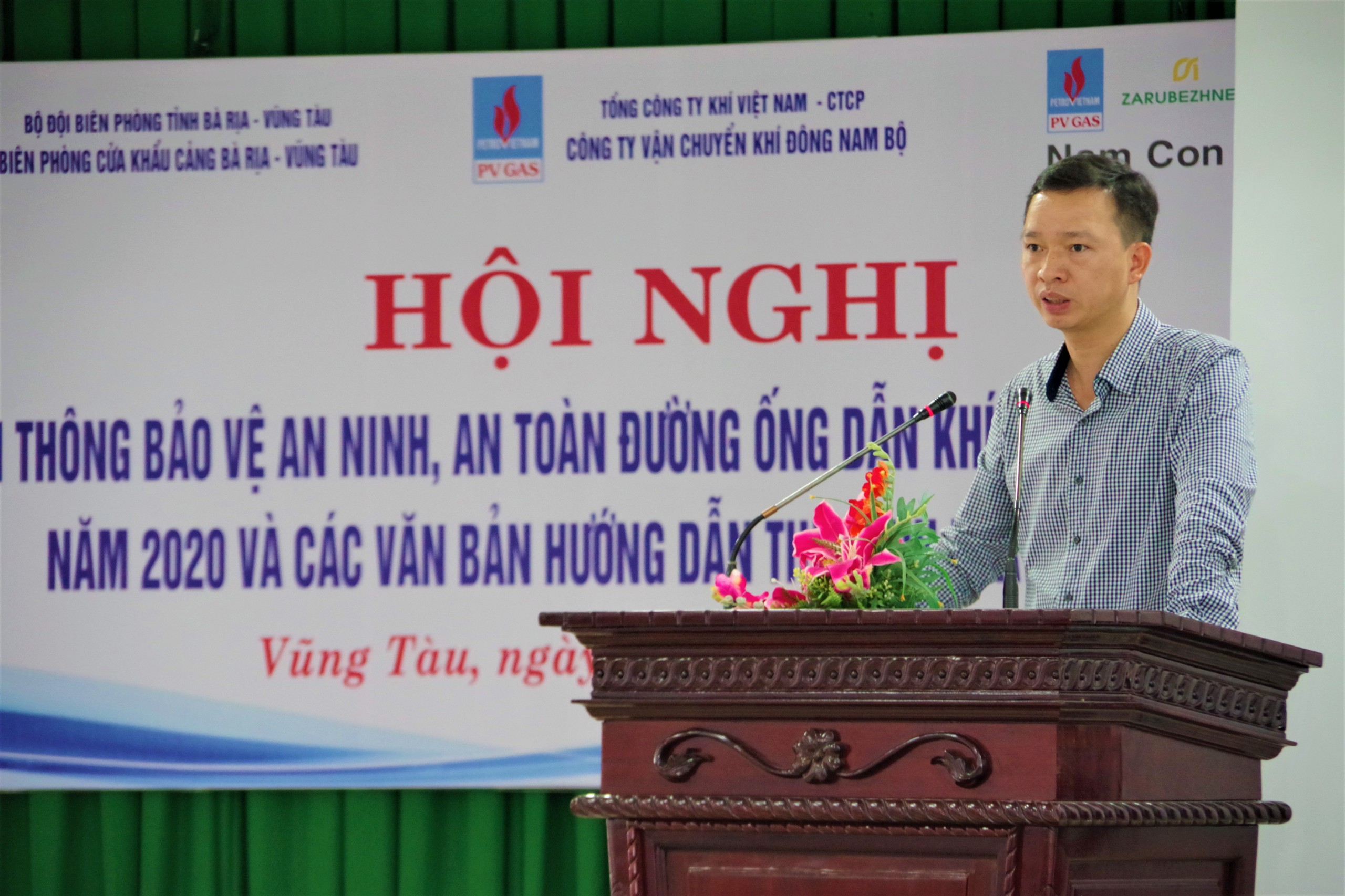 Ông Nguyễn Kim Ngọc, Phó Giám đốc Công ty vận chuyển khí Đông Nam bộ phát biểu tại hội nghị. (Ảnh: Quang Anh)Đại tá Nguyễn Văn Thống, Phó Chính ủy, BĐBP tỉnh Bà Rịa-Vũng Tàu đã tuyên truyền, phổ biến những nội dung về Luật Biên phòng Việt Nam và Nghị định số 106/NĐ-CP ngày 06/12/2021 của Chính phủ quy định chi tiết một số điều của Luật Biên phòng Việt Nam. Trong đó, nêu rõ một số chính sách của Nhà nước về BĐBP; chức năng, nhiệm vụ, quyền hạn của lực lượng Biên phòng, nguyên tắc, lực lượng thực thi nhiệm vụ Biên phòng; hệ thống tổ chức, phạm vi hoạt động của BĐBP, chế độ, chính sách đối với lực lượng thực thi nhiệm vụ Biên phòng và BĐBP; hoạt động phối hợp giữa BĐBP với các lực lượng trong quân đội trong áp dụng hình thức quản lý, bảo vệ biên giới quốc gia…