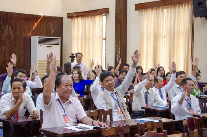 Các đại biểu biểu quyết thông qua danh sách bầu Ban chấp hành Hội Nhà báo tỉnh khóa VI, nhiệm kỳ 2020-2025.
