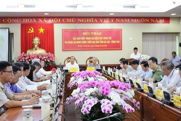 Tại Hội thảo, Sở Tài nguyên và Môi trường tỉnh đã báo cáo tham luận bàn về công tác tham mưu thi hành án hành chính trong lĩnh vực đất đai trên địa bàn. UBND thành phố Vũng Tàu trình bày tham luận về các giải pháp nâng cao hiệu quả công tác thi hành án hành chính. Tòa án nhân dân tỉnh cũng tham luận về những sai sót phổ biến khi ban hành quyết định hành chính, thực hiện hành vi hành chính của UBND các cấp.