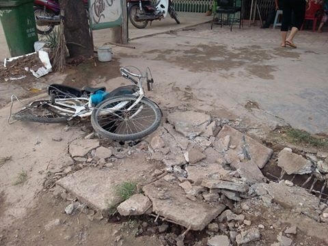 Xe khách do bé trai này điều khiển tiếp tục lao vào một bé gái đi xe đạp rồi đâm vào nhà dân bên đường mới chịu dừng lại.