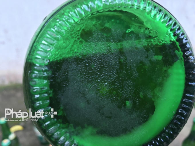 Tại một đại lý nằm trên phố Thái Đào, có rất nhiều chai bia được người dân mang ra trả lại xếp ngổn ngang. Theo quan sát của phóng viên, những chai bia này chai thì bị đóng cặn trắng ở đáy chai. Một số chai khác thì nhiều vẩn đục và nhìn bằng mắt thường thì có lẽ người tiêu dùng không dám uống những chai bia này.