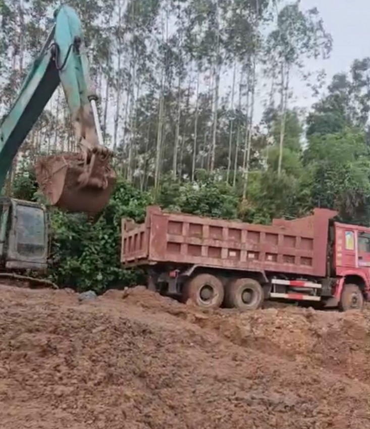 Nhìn từ trên cao thì trong khuôn viên mỏ của Công ty này có đến 3 đến 4 xe máy xúc cỡ lớn đang hoạt động hết công suất múc, cát lên các xe howo.
