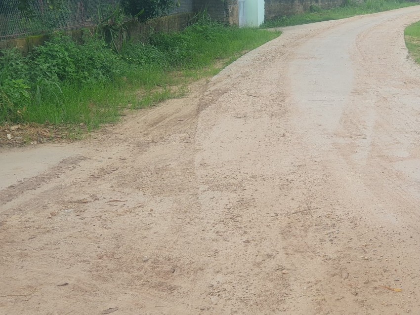 | | Tuyến đường bê tông liên xã được bao phủ bởi 1 lớp cát, sỏi dày kín bề mặt đường bê tông do quá trình các xe tải vận chuyển cát sỏi làm rơi ra mặt đường. | |