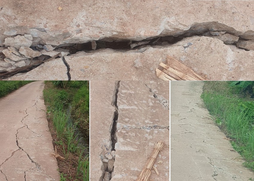 Cụ thể, từ ngoài đường nhựa lớn rẽ vào thôn Tân Sỏi, thôn Chiềng thì không khó để bắt gặp tình trạng tuyến đường bê tông nối xã Tân Sỏi với xã Đồng Tâm đã có nhiều đoạn bị nứt toác, vỡ vụn gây mất an toàn cho người và phương tiện tham gia giao thông.