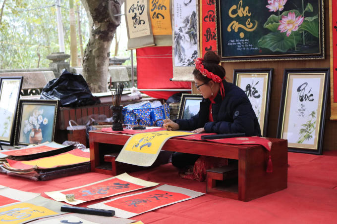 Nhiều du khách đến chùa xin chữ đầu năm.