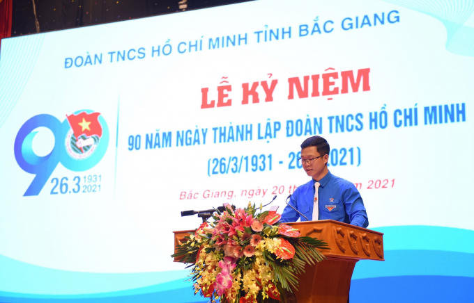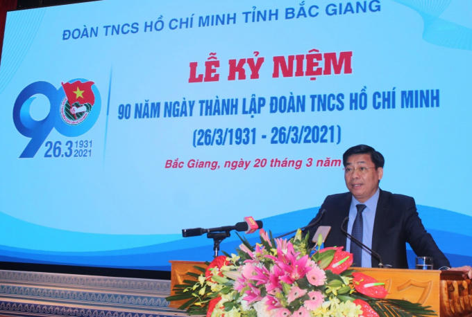 Phát biểu tại buổi lễ, đồng chí Dương Văn Thái - Bí thư Tỉnh ủy, Chủ tịch HĐND tỉnh khẳng định Đoàn TNCS Hồ Chí Minh đã không ngừng lớn mạnh, trưởng thành, làm tốt nhiệm vụ đoàn kết, tập hợp, giáo dục, vận động thanh niên tham gia các công việc chung của đất nước. Trong công cuộc đổi mới, thanh niên Việt Nam đã có nhiều đóng góp quan trọng, góp phần cùng toàn Đảng, toàn dân và toàn quân xây dựng đất nước có được cơ đồ, tiềm lực, vị thế và uy tín quốc tế như ngày hôm nay. Đồng chí nhấn mạnh nhiều phong trào Đoàn của Bắc Giang trở thành điểm sáng của cả nước như: Phong trào “Áo lụa tặng bà”, “Cùng bước chân em đến trường”, “Tình nguyện mùa Đông”, “Em tôi đi thi”… Từ các phong trào, hàng trăm công trình, phần việc thanh niên tham gia phát triển kinh tế, xã hội, văn hóa, đảm bảo quốc phòng an ninh được tuổi trẻ Bắc Giang thực hiện hiệu quả. Nhiều tấm gương điển hình tiêu biểu đã xuất hiện, nhiều thanh niên Bắc Giang có kết quả nghiên cứu, học tập, lao động, thi đấu thể thao đạt thành tích cao, góp phần làm rạng danh quê hương Bắc Giang anh hùng.