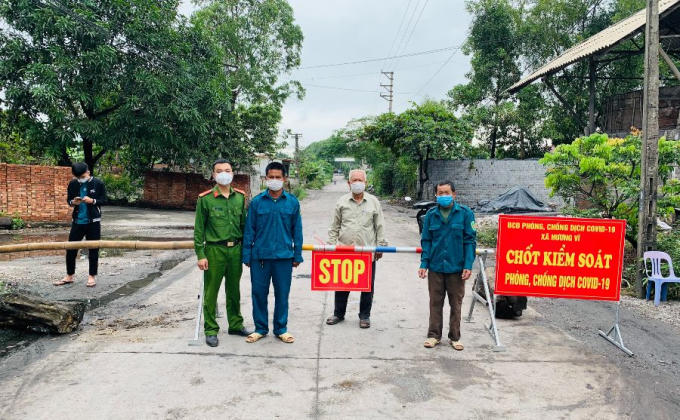 Chốt kiểm soát tại xã Hương Vĩ huyện Yên Thế.