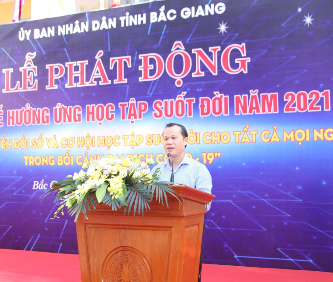 Cùng dự có đại diện lãnh đạo Sở, ngành: GD&ĐT, TT&TT, Tỉnh đoàn, Liên đoàn Lao động, Hội Khuyến học và UBND huyện Lục Nam. Lễ phát động được tổ chức bằng hình thức trực tuyến với hơn 700 điểm cầu tại 10 huyện, thành phố trên địa bàn đã thu hút đông đảo cán bộ quản lý, giáo viên, học sinh tham gia.