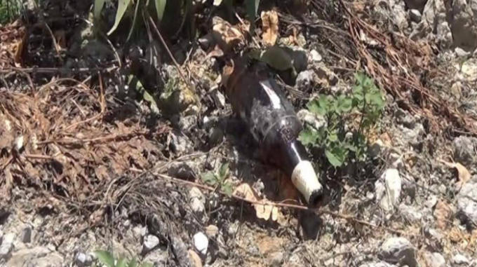 Vỏ chai bia vỡ tại hiện trường xảy ra vụ việc.