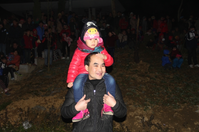 Nhiều bé được bố mẹ đưa đến trung tâm thị trấ Bắc Hà để xem bắn pháo hoa.