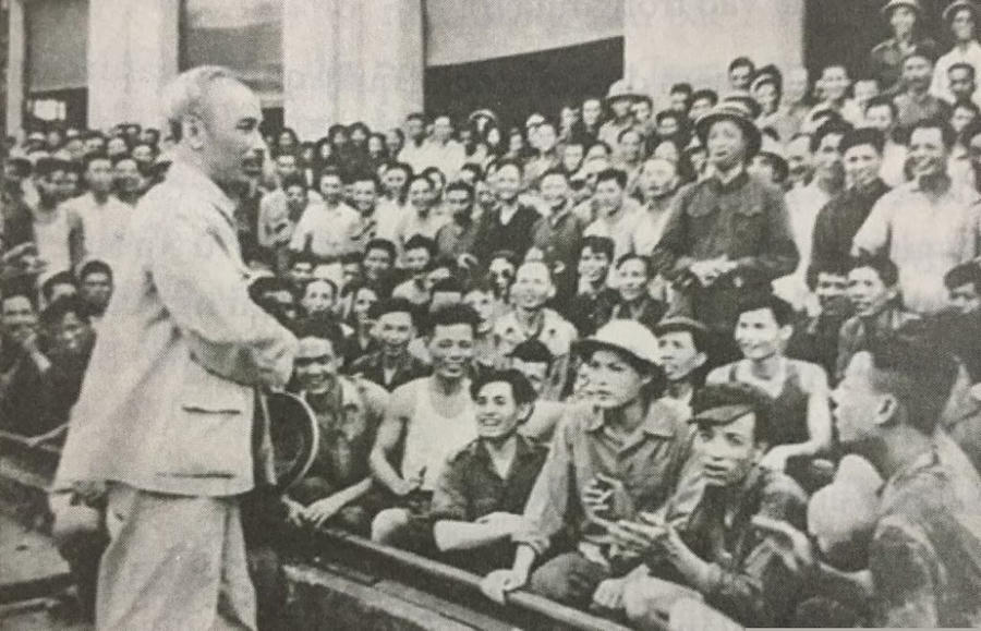 Nghe đến đấy, Bác Hồ có vẻ vui. Ngoài sân, lúc này gần như tất cả mọi người trong khu lao động đã chạy tới chen lấn nhau chờ đón Bác. Bác Hồ bước ra khỏi nhà, đứng trên bậc hiên cao để cho mọi người cùng nhìn thấy.