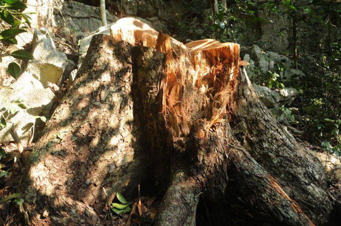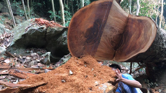 Hoặc như cây nghiến bị chặt hạ tại khu vực Lủng Ruốc đoạn giáp ranh giữa xã Nam Mẫu và xã Quảng Khê vào tháng 11/ 2016. Cây gỗ này có đường kính lên đến 2m, với khối lượng lên đến 60 khối gỗ trị giá hàng tỷ đồng bị đốn hạ.