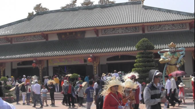 Dọc theo các tuyến đường về Quán Âm Phật Đài, rất nhiều chỗ bán hoa, trái cây, nhang, nước đóng chai, nón, đồ lưu niệm với đông đảo nhân viên mời gọi, tiếp thị người đi chùa. Đặc biệt, xung quanh tượng Bà có hàng trăm người chen chúc bày đồ cúng, nhiều người khác không chen vào được thì ngồi bên ngoài chờ đợi hoặc bày cả lễ vật ra phía xa để cúng. Hai bên miếu Bà cũng tấp nập người chen chân thắp nhang, khấn vái, xin cầu an, cầu siêu cho năm mới. Dù trời nắng gay gắt, không khí nóng nực hơn so với những ngày trước Tết nhưng hàng chục ngàn người vẫn đội nắng, chen chân vào cúng Bà.