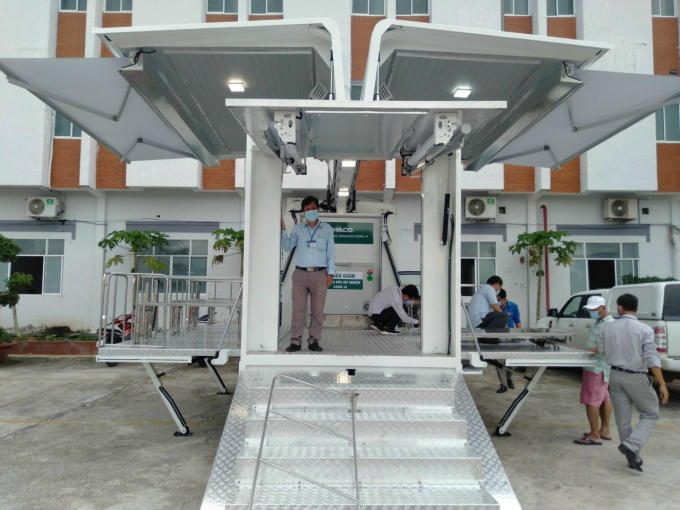 Ngoài ra, xe chuyên dụng còn được trang bị thùng lạnh phía trong để bảo quản vaccine và có hệ thống phun khử khuẩn sau mỗi lần sử dụng. Ngoài việc phục vụ cho tiêm chủng, xe chuyên dụng tiêm vaccine lưu động còn có thể sử dụng cho việc lấy mẫu xét nghiệm Covid-19 lưu động.