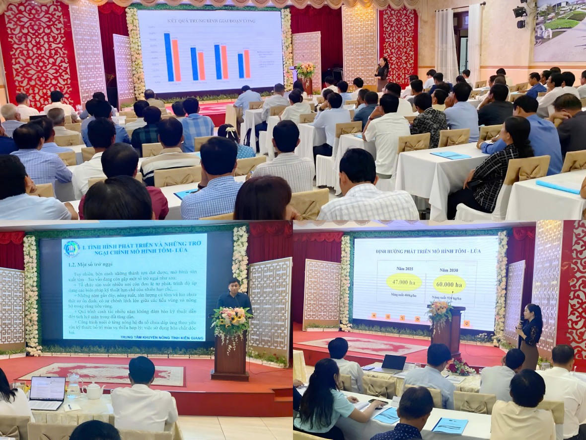 Tại Hội thảo, các đại biểu cũng chia sẻ thực trạng thuận lợi, khó khăn khi sản xuất tôm - lúa. Kết quả thực hiện cải tiến kỹ thuật mô hình tôm - lúa, định hướng phát triển đến năm 2030. Tổ chức WWF Việt Nam cũng chia sẻ về kết quả, đánh giá hiệu quả về môi trường, giảm phát thải đối với giải pháp cải tiến mô hình luân canh tôm - lúa, tôm - rừng.