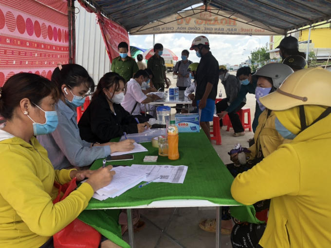 Kiểm tra và khai báo y tế tại một bến đò ở huyện Đông Hải, tỉnh Bạc Liêu.