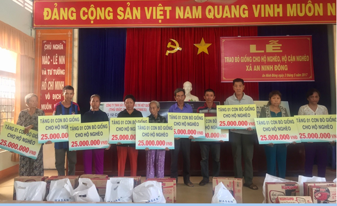 | Các hộ gia đình tại xã An Ninh Đông, Huyện Đức Hòa, Tỉnh Long An nhận hỗ trợ nguồn vốn mua bò giống từ Tập đoàn Novaland. |