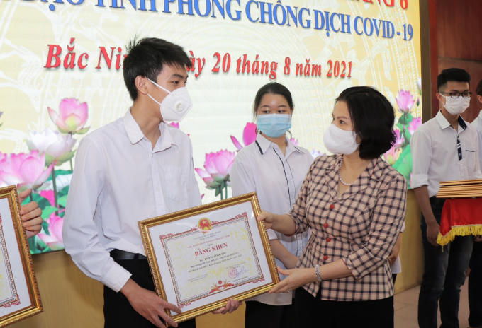 Chủ tịch UBND tỉnh Bắc Ninh Nguyễn Hương Giang vừa trao bằng khen cho 6 thủ khoa tại Kỳ thi tốt nghiệp THPT 2021.