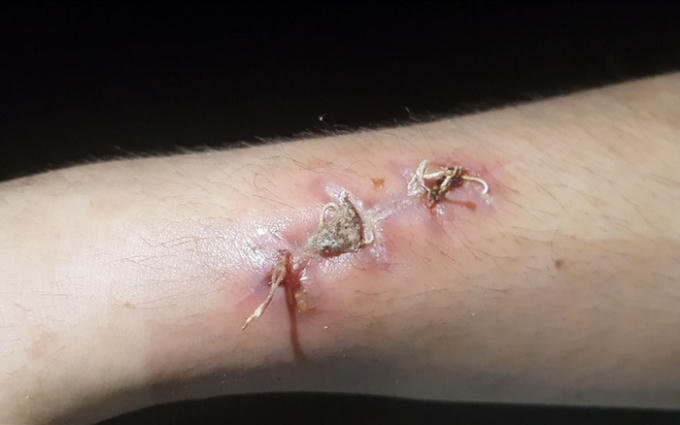 Vết thương trên tay nạn nhân phải khâu nhiều mũi. Ảnh Báo Lao Động.