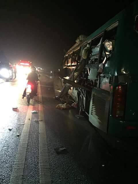 Theo những hình ảnh được cho là ghi nhận tại hiện trường, chiếc xe khách trên đã bị biến dạng và hư hỏng nặng.