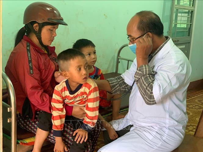 Bác sỹ Nay Blum khám bệnh cho trẻ em xã Glar, huyện Đăk Đoa (Gia Lai).