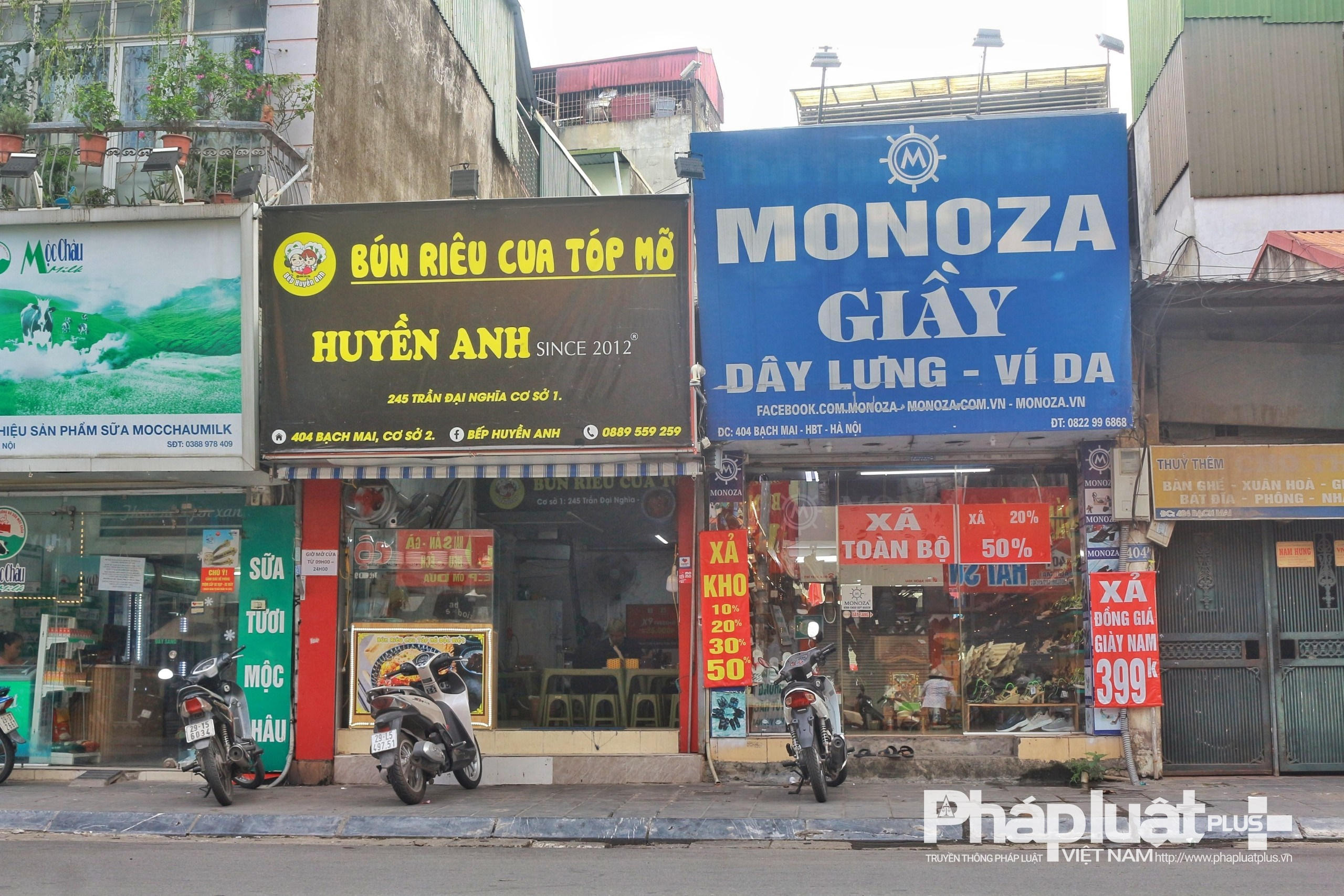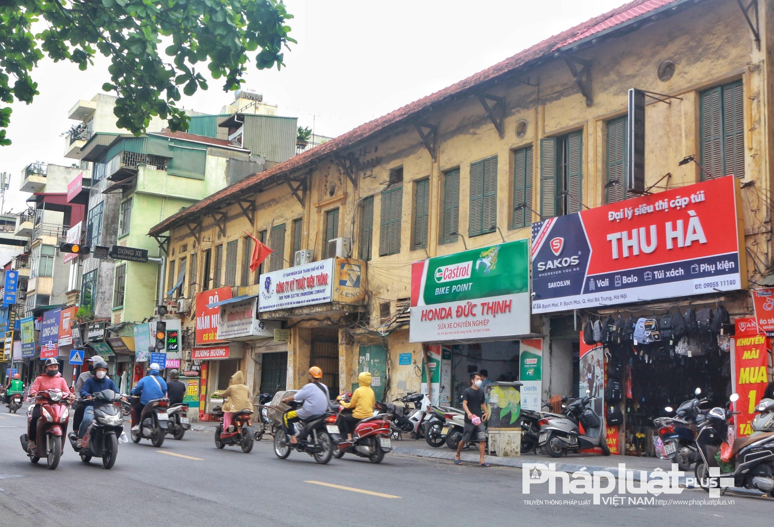 Tại địa chỉ số 418 Bạch Mai, bên cạnh bảng biển của Công ty Kỹ thuật Điện thông là các hàng quán, cửa hàng...