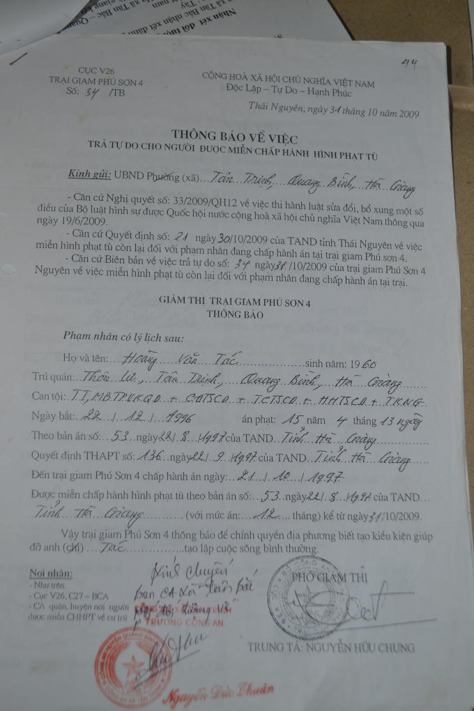 Năm 1992, Tác “lâm” bị bắt khi đang đánh bạc ở xã Tiên Yên, huyện Quang Bình, tỉnh Hà Giang (trước đây là tỉnh Hà Tuyên cũ - PV). Theo Tác, thời gian bị tạm giam ở trại giam TP Hà Giang chờ xử án gã được nhốt với một người Hoa có quốc tịch Trung Quốc, một người ở xã Việt Vinh (huyện Bắc Quang) và một người nữa ở xã Cao Bồ (huyện Vị Xuyên).