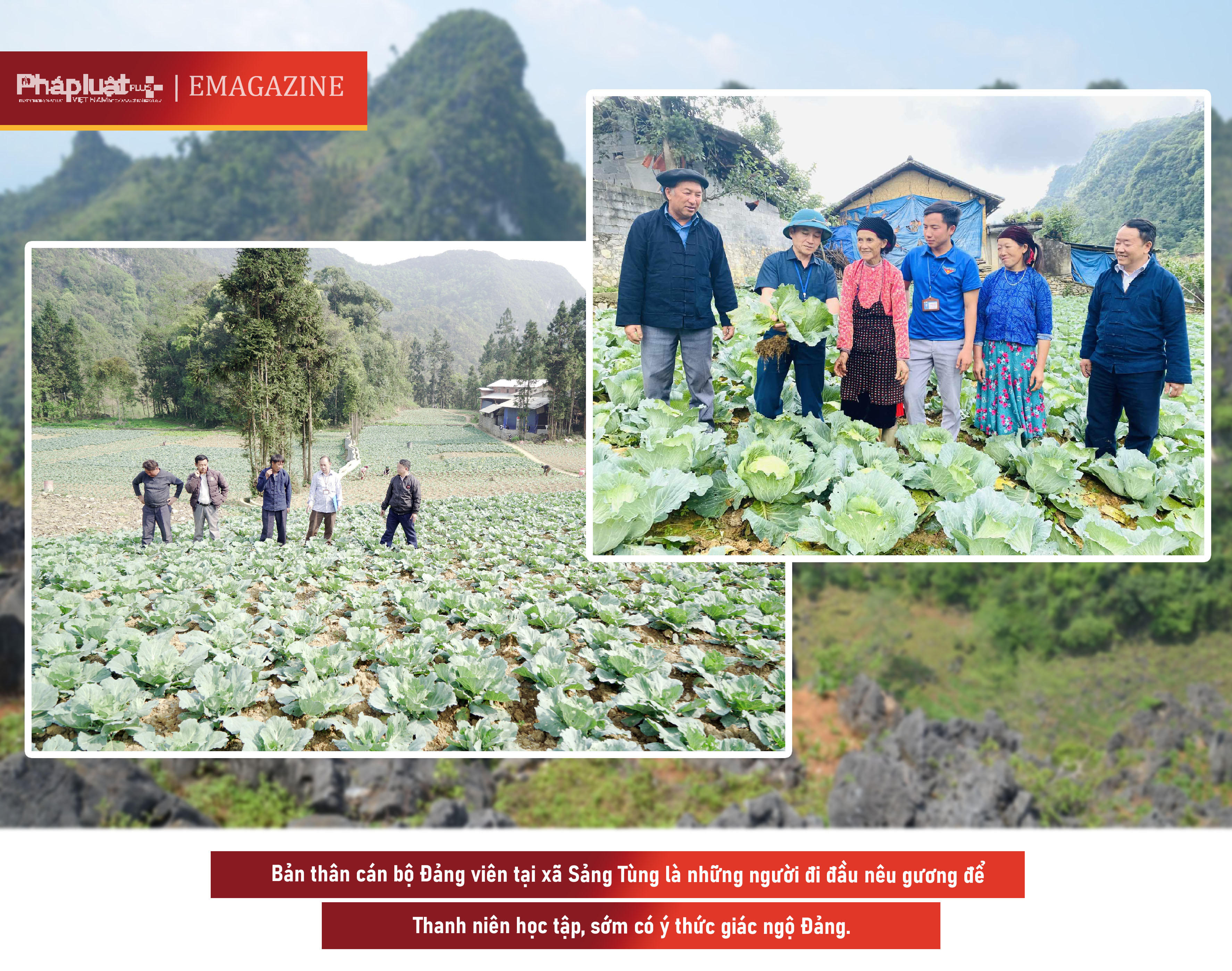 Lãnh đạo xã Sảng Tủng kiểm tra khu vực trồng cải bắp ở thôn thôn Séo Lủng B.