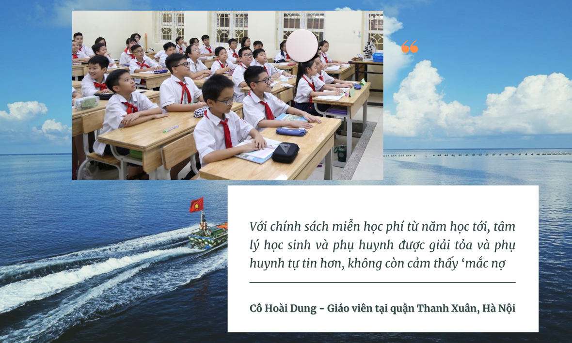 “Với chính sách miễn học phí từ năm học tới, tâm lý học sinh và phụ huynh được giải tỏa và phụ huynh tự tin hơn, không còn cảm thấy ‘mắc nợ’ giáo viên” – cô Dung bày tỏ.
