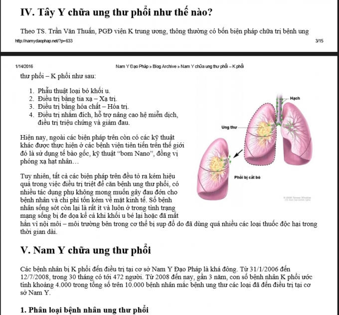 Trên giấy tờ còn ghi rõ: “Mặc dù K phổi là mối đe dọa tử vong lớn nhất đứng đầu nhiều loại ung thư khác nhau, nhưng nếu bệnh nhân chưa có can thiệp mổ cắt, hóa trị, xạ trị… thì đa số bệnh nhân có thể chữa khỏi được hoàn toàn”.