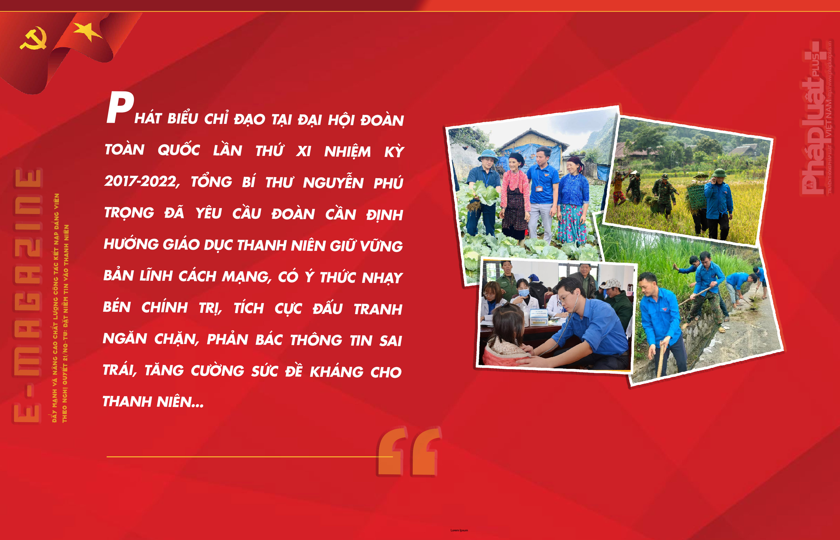 Phát biểu chỉ đạo tại Đại hội Đoàn toàn quốc lần thứ XI nhiệm kỳ 2017-2022, Tổng Bí thư Nguyễn Phú Trọng đã yêu cầu: "Đoàn cần định hướng giáo dục thanh niên giữ vững bản lĩnh cách mạng, có ý thức nhạy bén chính trị, tích cực đấu tranh ngăn chặn, phản bác thông tin sai trái, tăng cường sức đề kháng cho thanh niên trước những biểu hiện tiêu cực, mặt trái của xã hội và sự chống phá xuyên tạc của các thế lực thù địch, nhất là trên mạng xã hội, “tránh tình trạng nhạt Đảng, khô Đoàn, xa rời chính trị...".