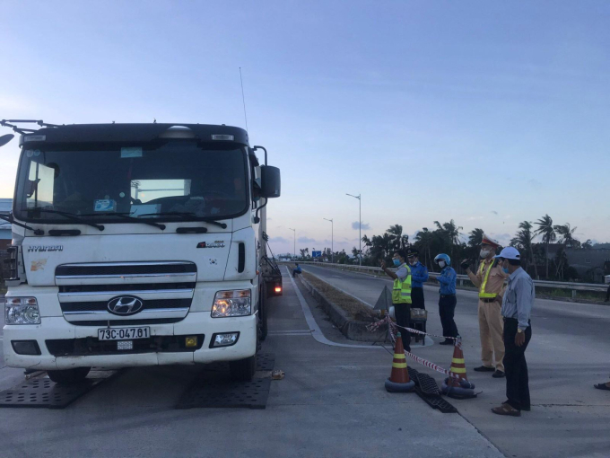 Xe siêu trọng bị lực lượng chức năng kiểm tra, xử lý.