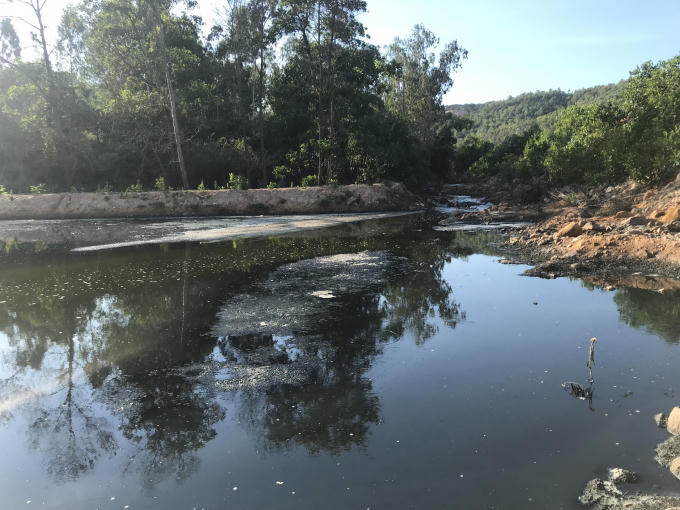 Dòng khe Chùa được đắp chặn lại tạo thành một cái đập nhỏ bằng đất để chứa nước thải từ các hồ tôm.