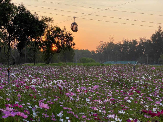 Ngồi trên cabin cáp treo lướt đi giữa lưng chừng trời, bạn sẽ ngỡ ngàng khi nhẹ "bay" qua những thảm hoa bướm đủ sắc màu mong manh, dịu dàng trong gió và cả một miền núi Bà Đen thênh thang xanh mướt thu trọn vào tầm mắt.